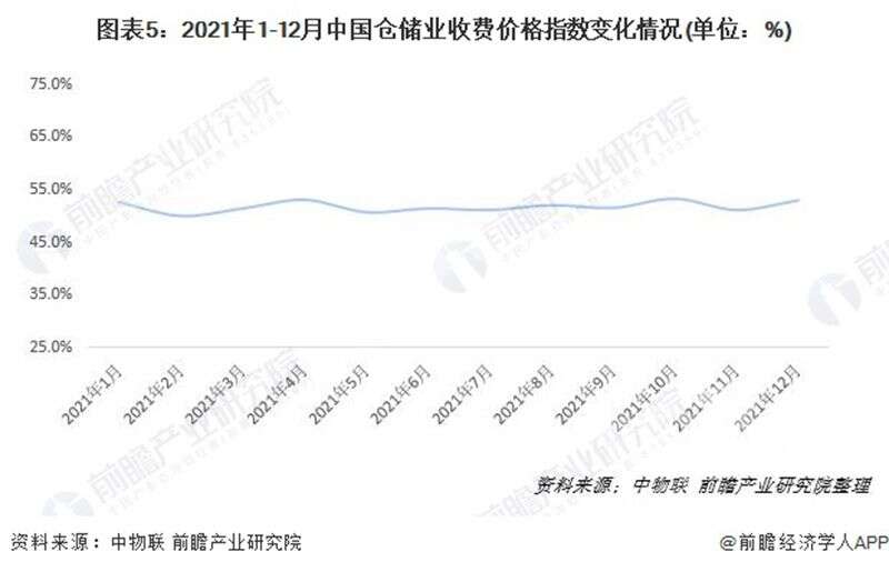 2021年1-12月,中國倉儲指數(shù)均值為52.0%,較2020年增長1.1個百分點(diǎn),整體位于50%以上的擴(kuò)張區(qū)間內(nèi),顯示倉儲行業(yè)運(yùn)行穩(wěn)定。年末消費(fèi)品受節(jié)日因素和電商活動提振,業(yè)務(wù)需求較為旺盛;部分大宗商品受冬儲需求增強(qiáng)影響,整體庫存水平繼續(xù)提高。需求增加令倉儲市場租金有所上漲,收費(fèi)價格指數(shù)保持增長。后期來看,受嚴(yán)寒天氣持續(xù)以及春節(jié)臨近等因素影響,建筑業(yè)景氣回落,大宗商品將進(jìn)入傳統(tǒng)需求淡季,加之終端市場需求趨弱,預(yù)期后期行業(yè)運(yùn)行壓力或?qū)⒂兴哟蟆?/p>