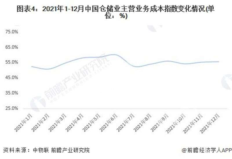 根據(jù)中國物流與采購聯(lián)合數(shù)據(jù),2021年1-12月,中國倉儲業(yè)主營業(yè)務(wù)成本指數(shù)均值為55.3%,同比增長3.1個百分點(diǎn),顯示2021年倉儲行業(yè)成本支出增速有所提升,企業(yè)經(jīng)營壓力較大,倉儲行業(yè)降本增效仍需進(jìn)一步夯實(shí)。